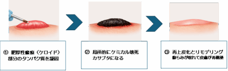 ①肥厚性半(ケロイド)の部分に薬液をつける